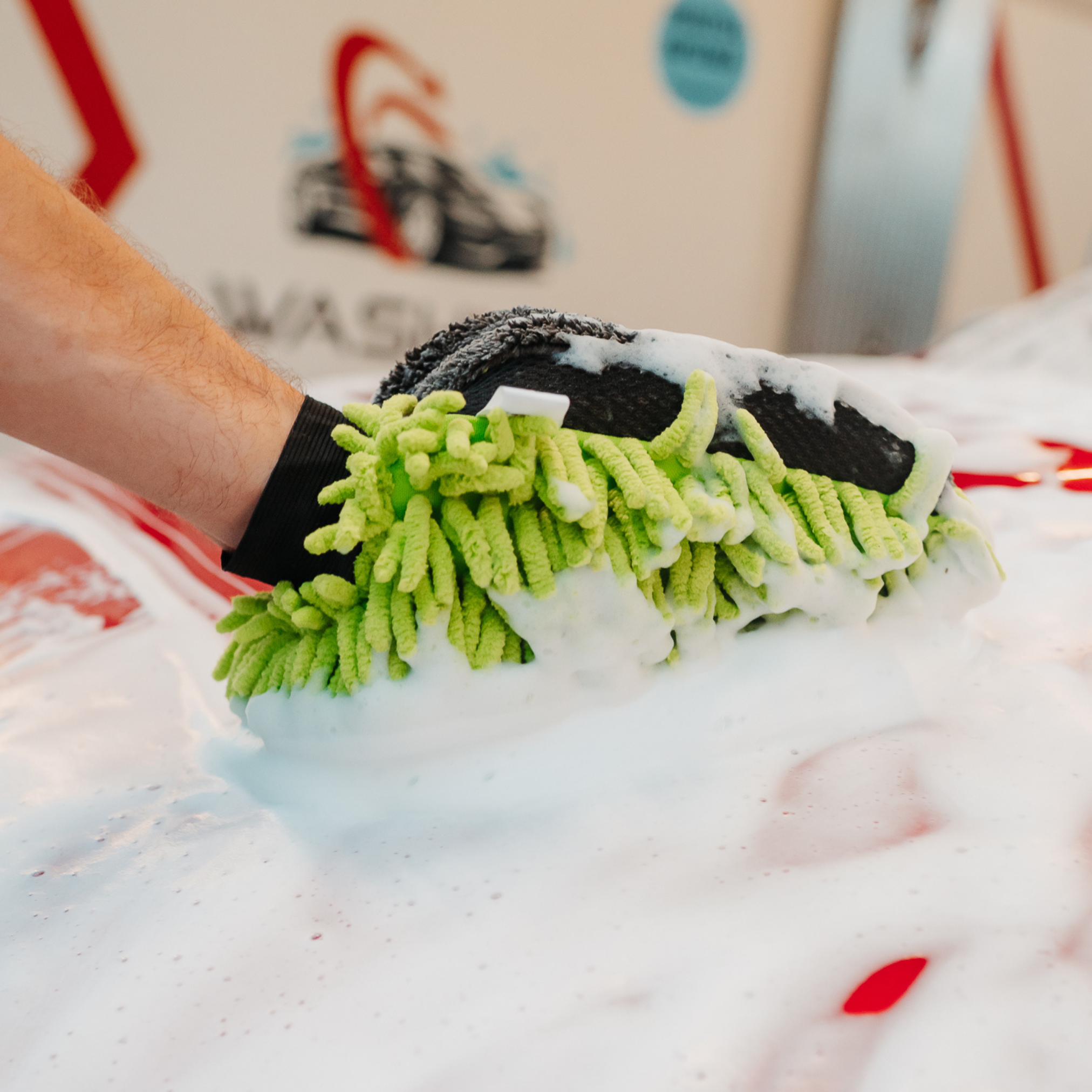 Zu jeder Bestellung erhalten Sie GRATIS einen professionellen 2-in-1 Mikrofaser-Waschhandschuh. Das intelligente zweiseitige Design ermöglicht eine vollständige Reinigung: Die „Nudel -Seite (Chenille-Seite) reinigt hartnäckigen Staub und Schmutz; die weiche Seite ist ideal zum Polieren und Trocknen. Das flauschige, weiche und hochsaugfähige Material zerkratzt die Oberflächen nicht und verhindert dank der hochwertigen elastischen Manschette ein Abrutschen.